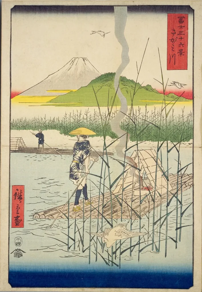 - 頭部真後ろ: 歌川広重『冨士三十六景 さがみ川』(ゴッホは白鷺を雁のように描き変えています)