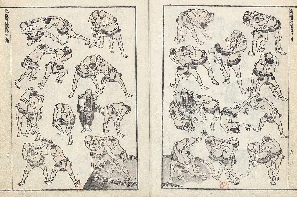 画像出典:葛飾北斎「相撲(『北斎漫画』より)」(1814-1878年刊)。出典:Wikimedia Commons